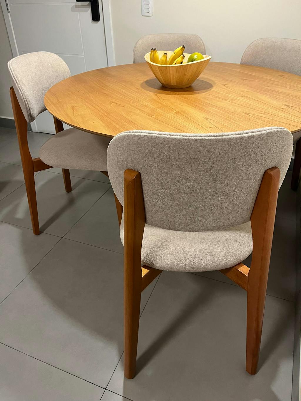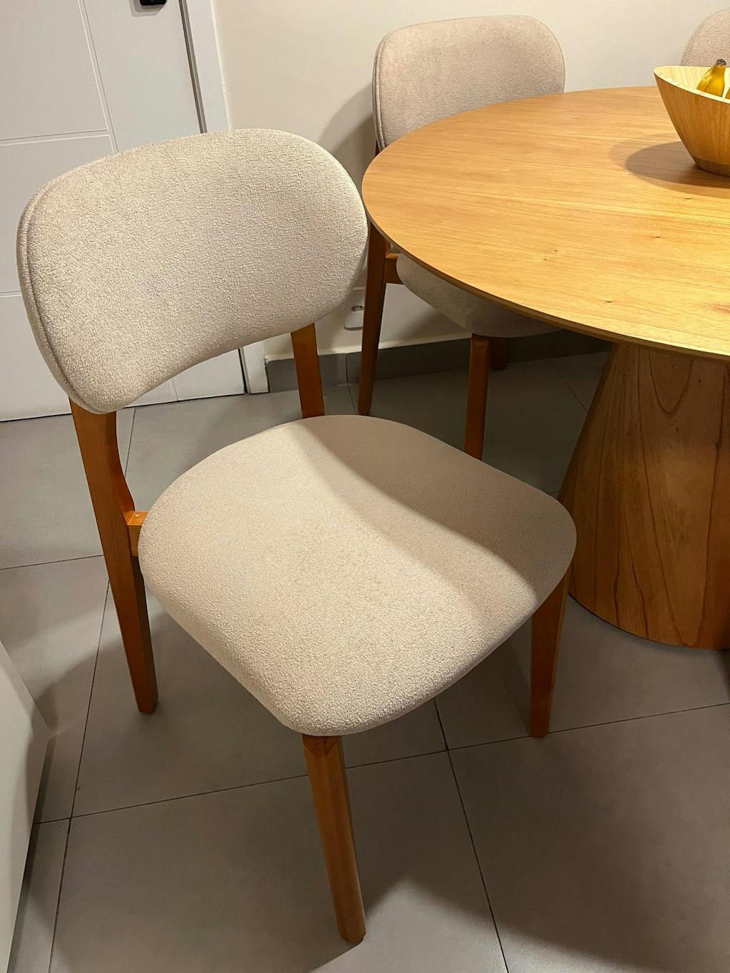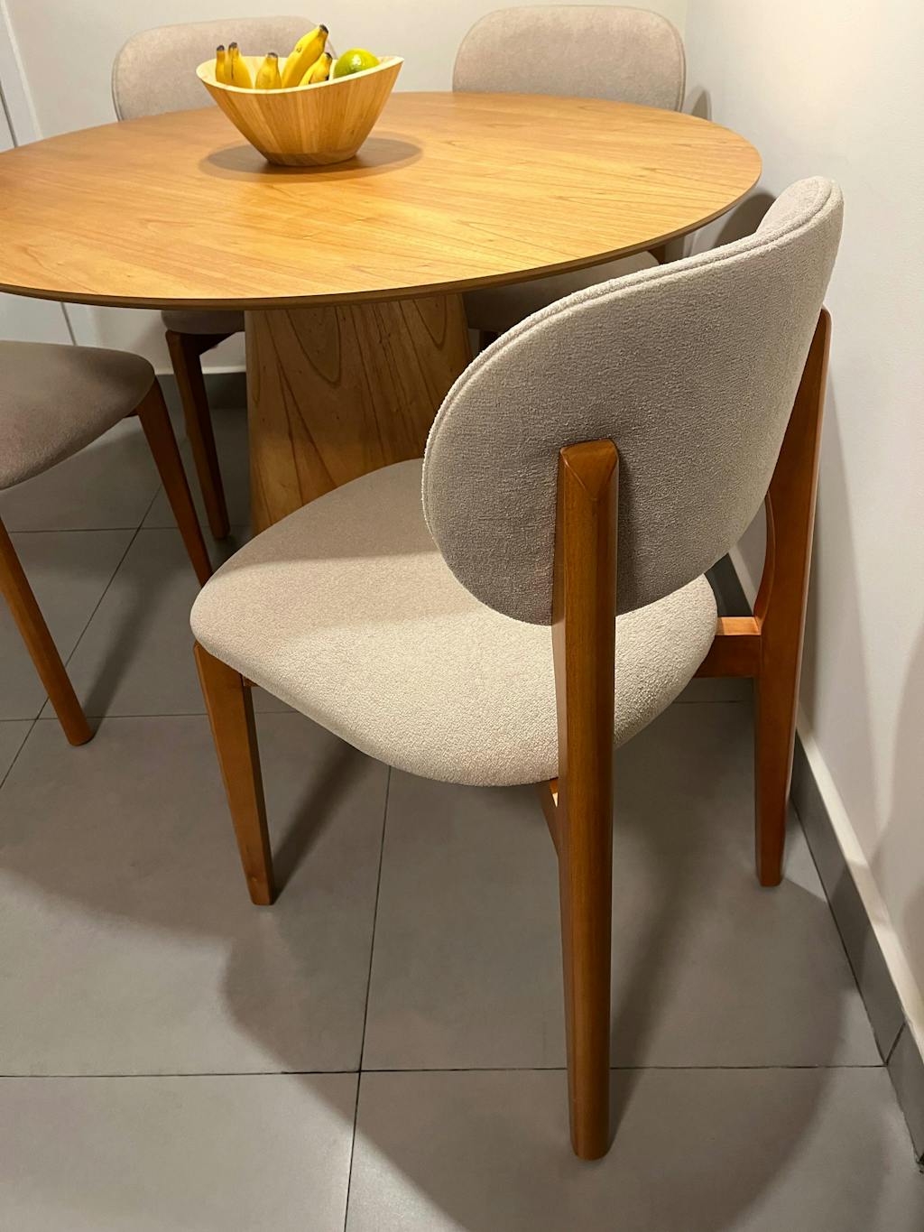 A cadeira é muito bonita! O tecido é de qualidade, com uma textura interessante, de estrutura robusta e o design é bastante sofisticado! A única observação que eu tenho é que a cadeira é grande, pode ser que não caibam duas no mesmo lado da mesa, como foi o caso aqui de casa (minha mesa tem tampo de 1,30m x 0,80x).